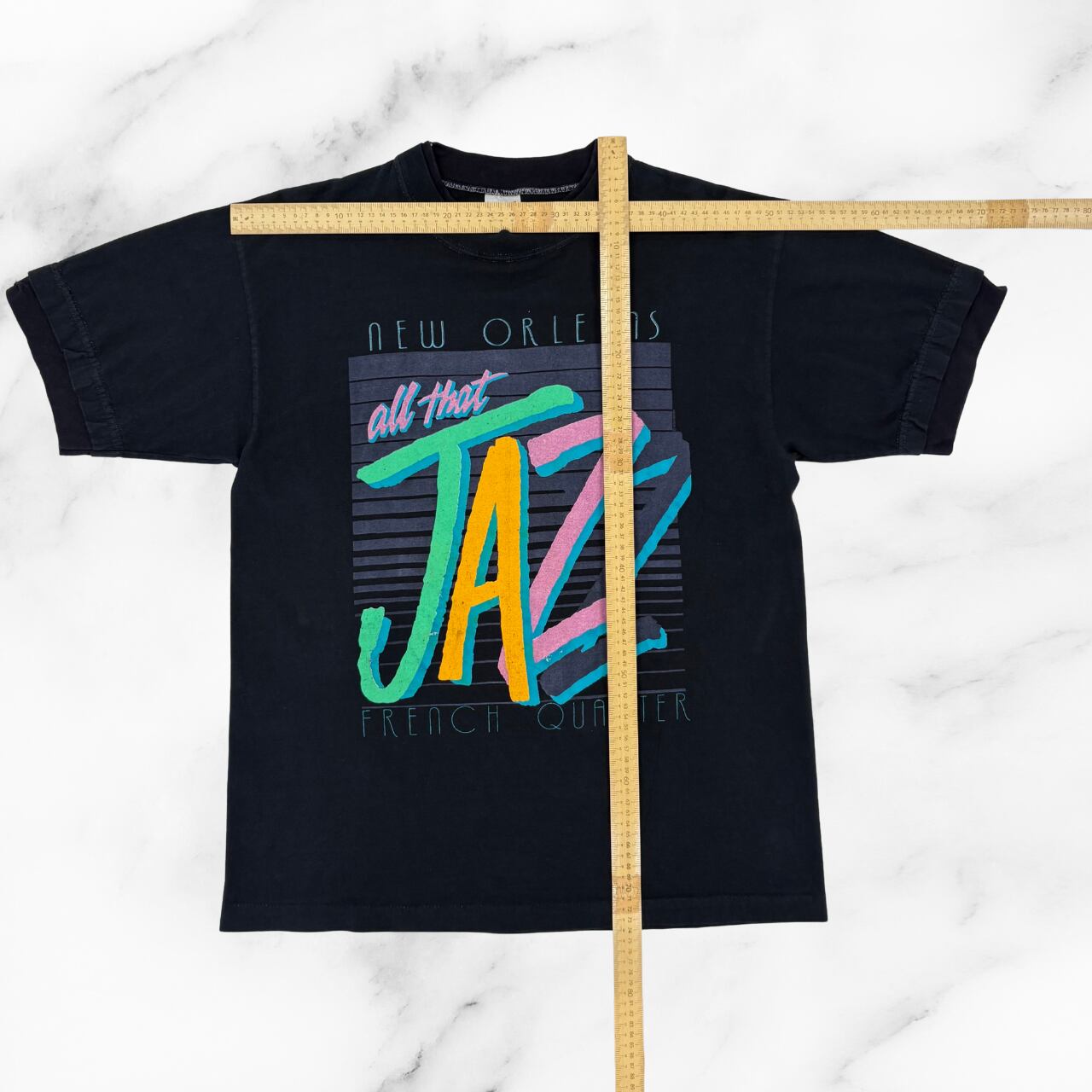 Tシャツ USA製 ALORE ブラックボディー 前に”~JAZZ~”プリント 裾のみシングルステッチ、襟、袖はダブル仕様 送料無料