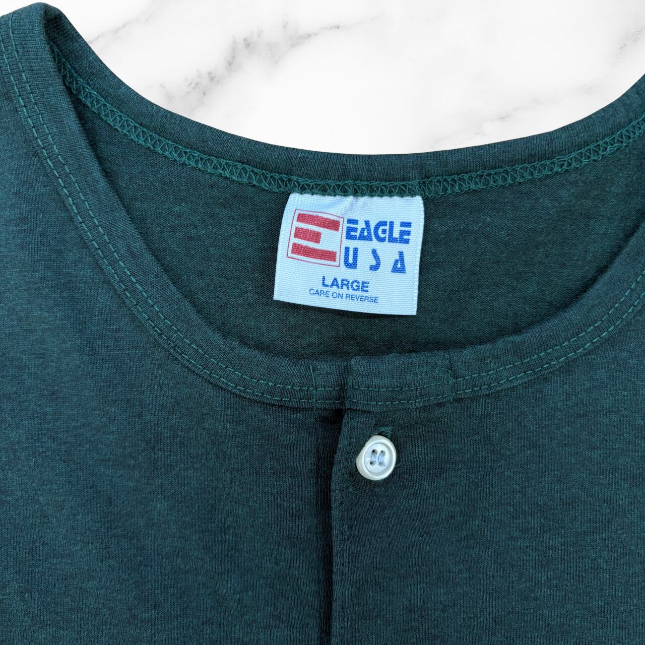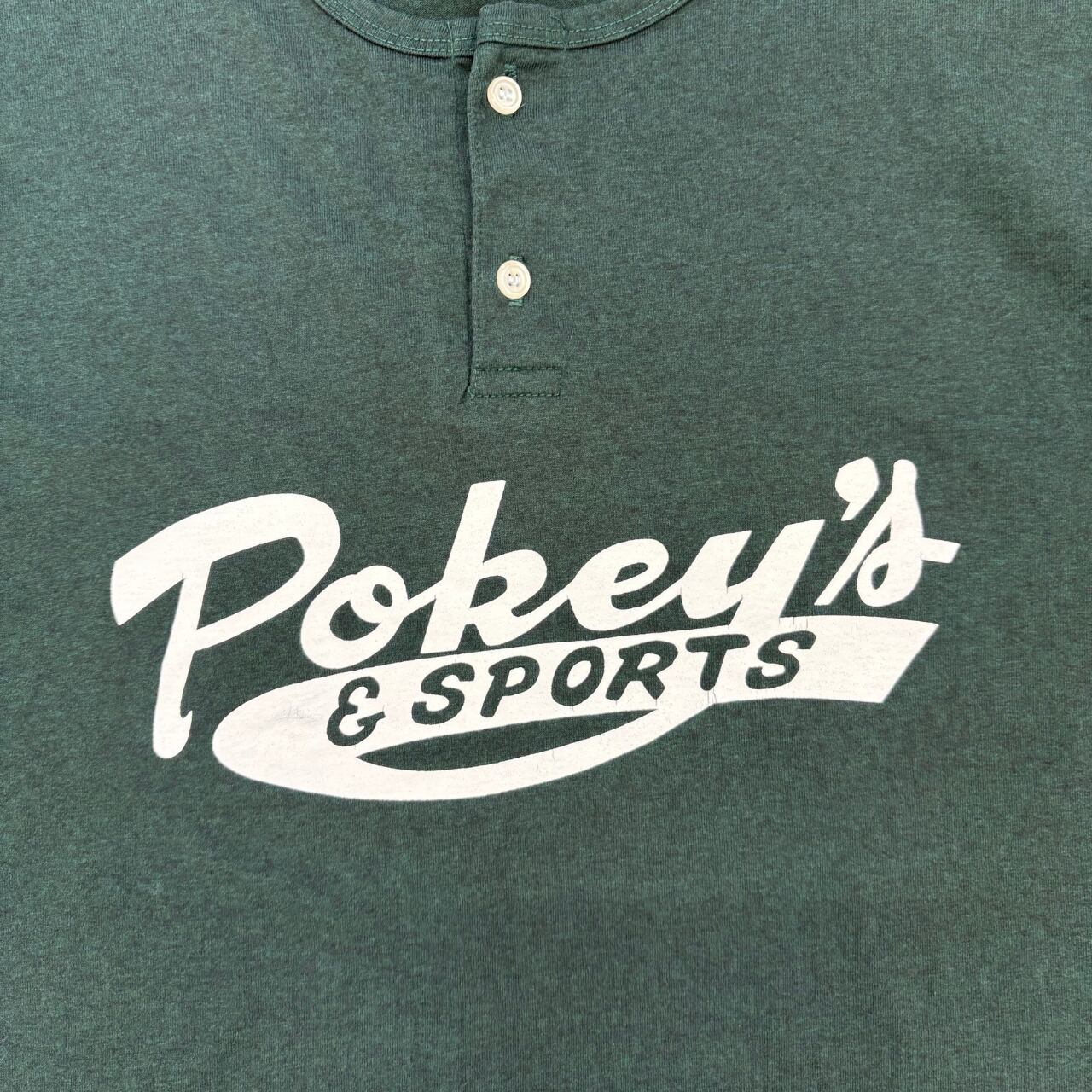 Tシャツ 90'sUSA製 EAGLEボディー 杢グリーン地 ヘンリーネック 前に”Pokey's" 後ろに”3”白プリント 送料無料