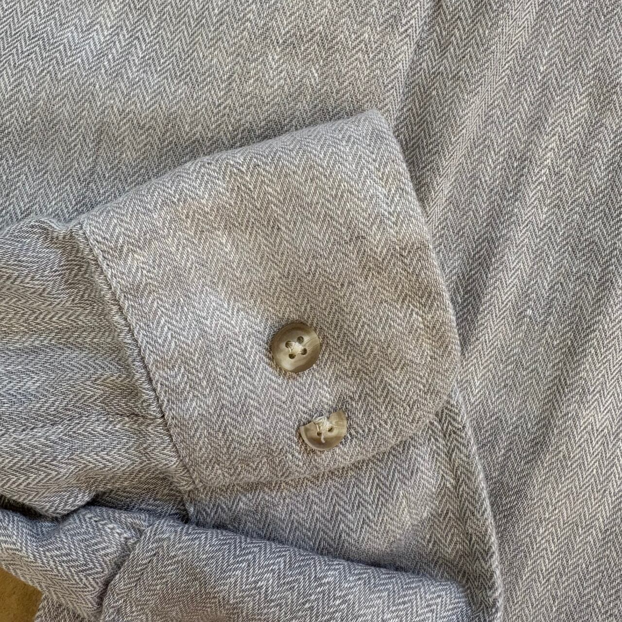 長袖 VAN HEUSEN 香港製バンドカラーでヘリンボーンツイル グレー