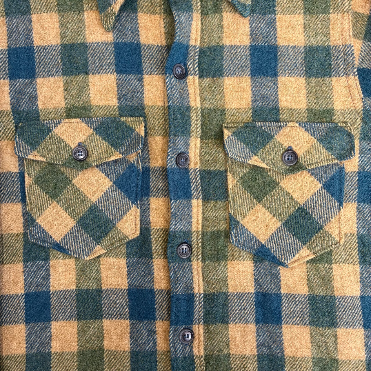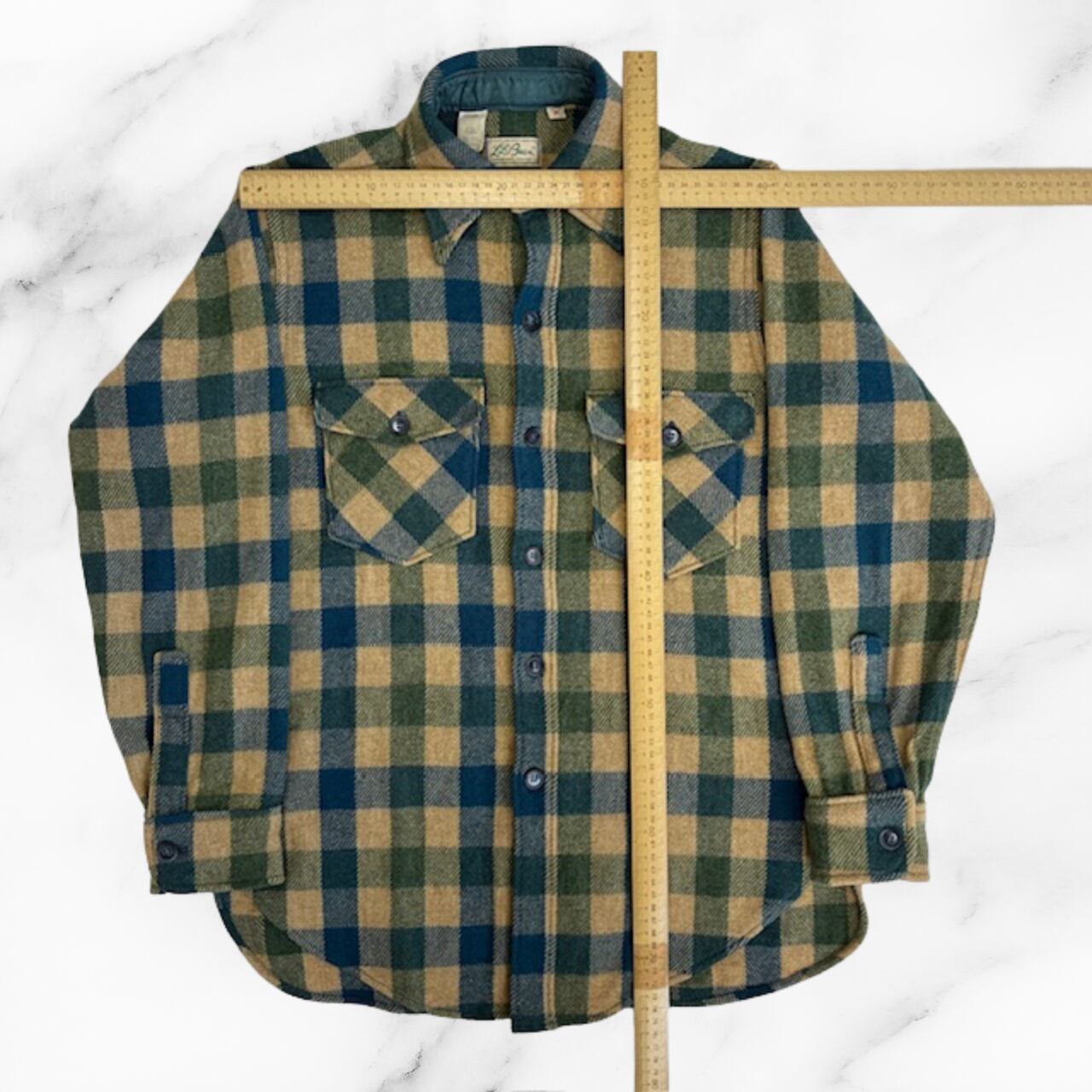 LLBean 筆記タグ ウールシャツ ブルーとクリームバッファローチェック