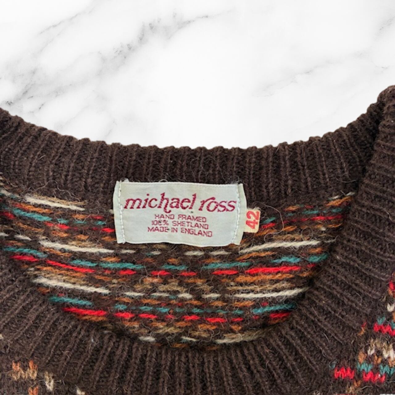 Micael Ross ウールニット ブラウン基調 フェアアイル柄