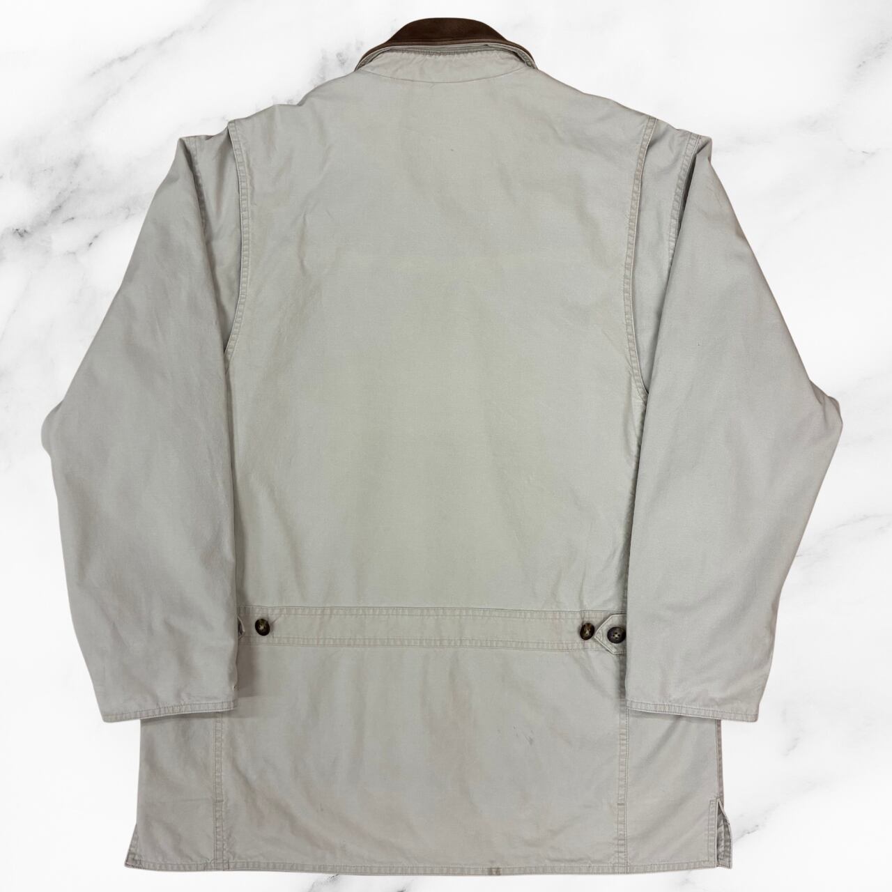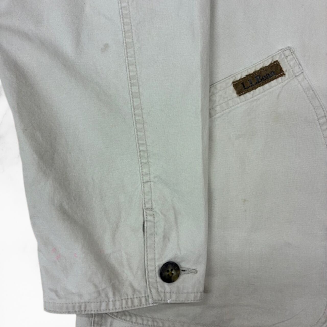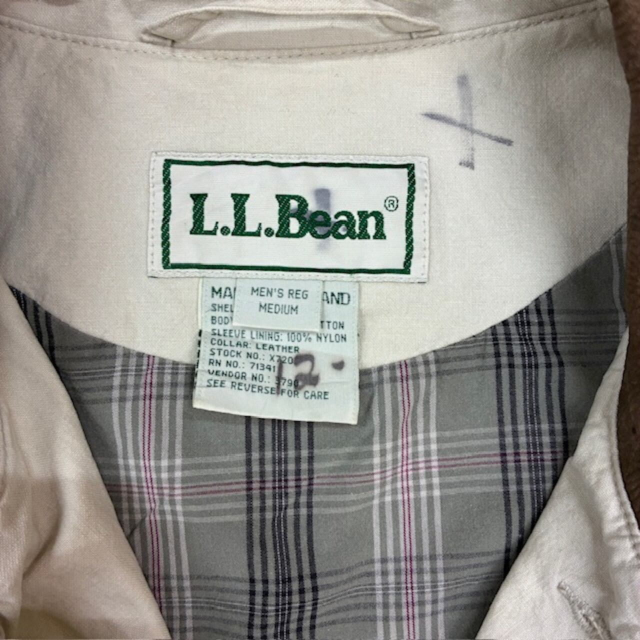 ハンティングジャケット LLBean90’s タイ製 ベージュ 襟がレザー 日本サイズLサイズ相当 目立たない染み複数有り