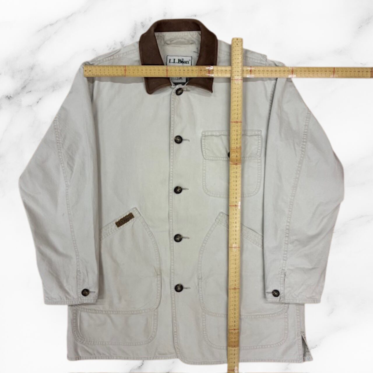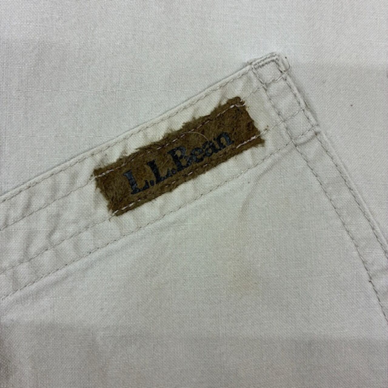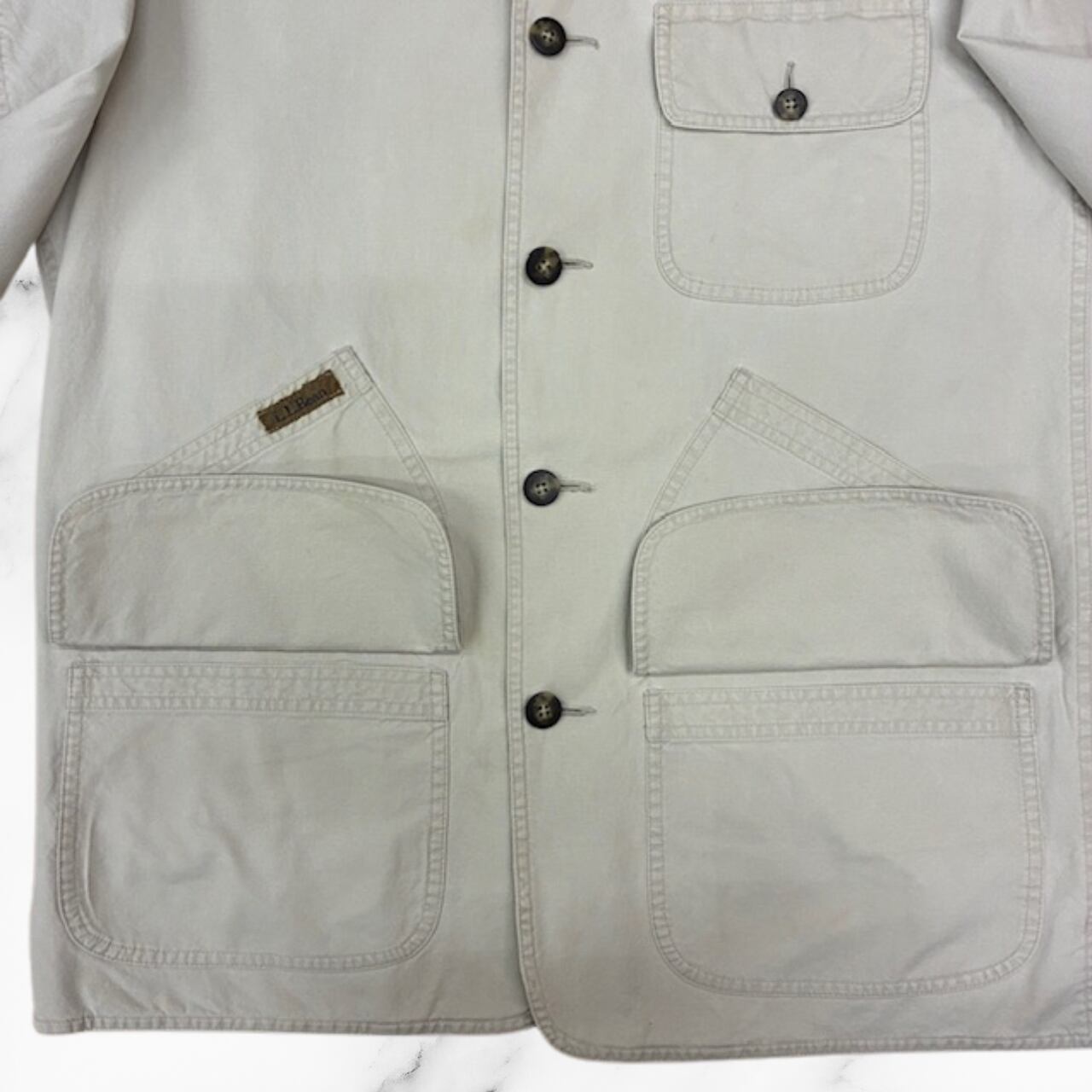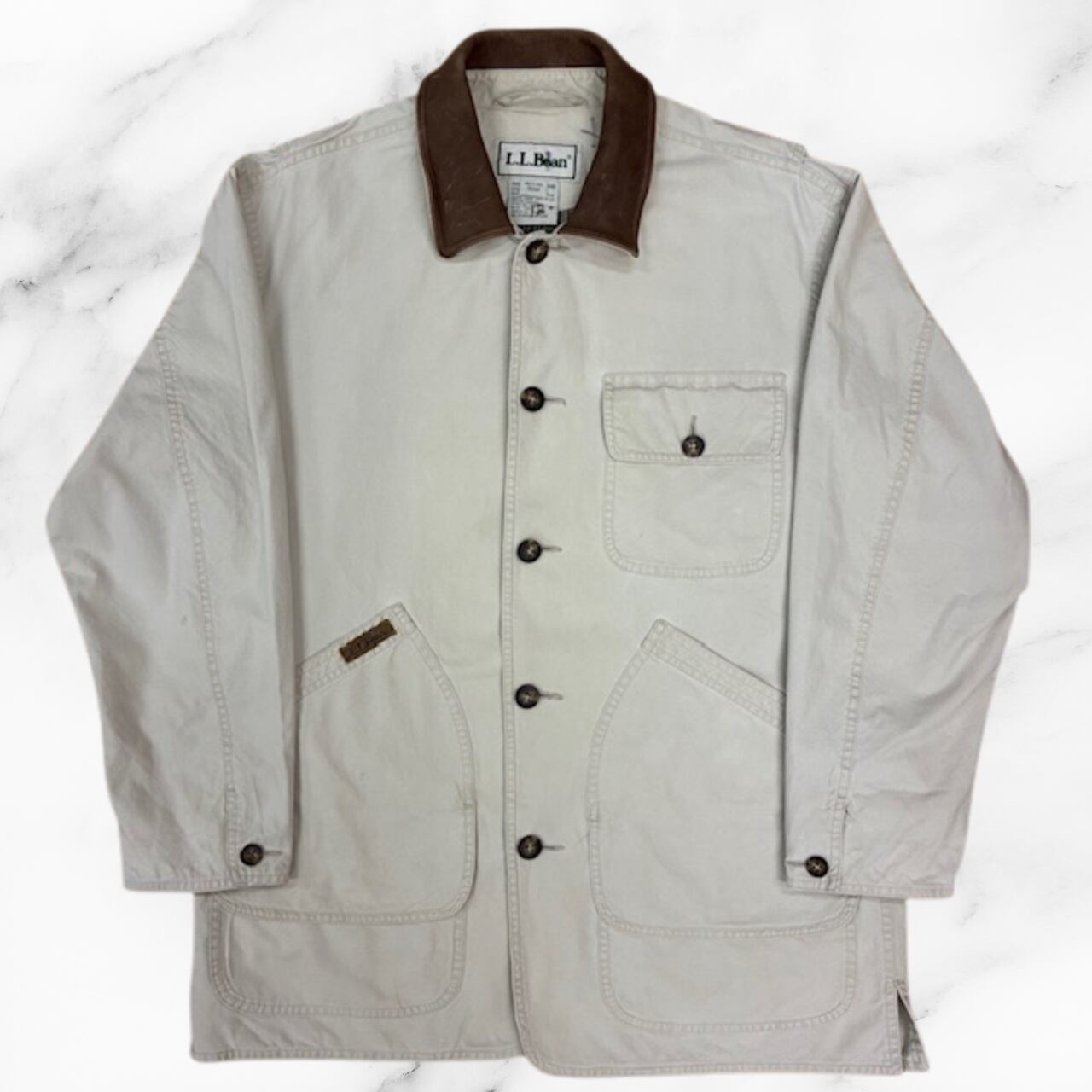 ハンティングジャケット LLBean90’s タイ製 ベージュ 襟がレザー 日本サイズLサイズ相当 目立たない染み複数有り
