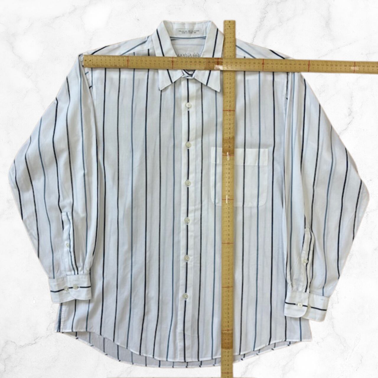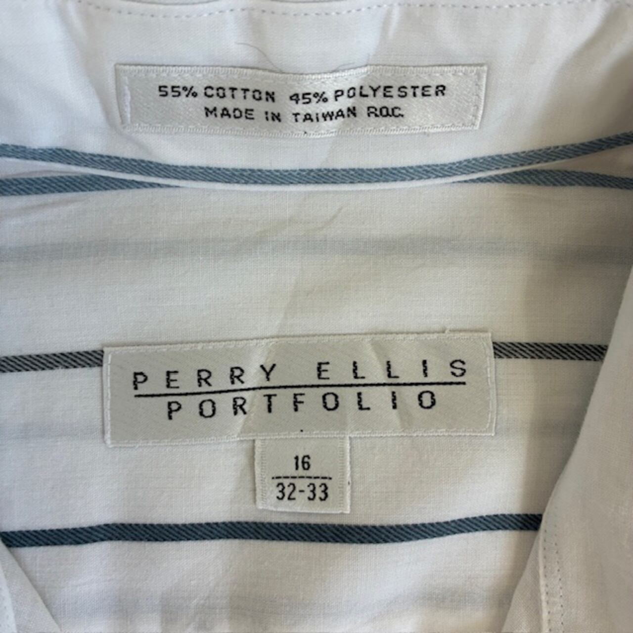 長袖 ペリーエリス 白地にストライプ ボタンダウン